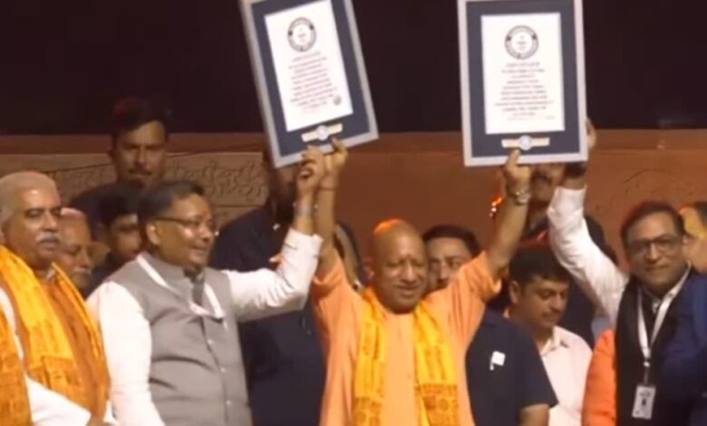 अयोध्या में दीपोत्सव समारोह के दौरान बनाए गए दो नए गिनीज वर्ल्ड रिकॉर्ड बने। इसके प्रमाण पत्र भी सौंपे गए। एक साथ सबसे ज्यादा दीये जलाने का विश्व कीर्तिमान बना, जबकि अयोध्या जिला प्रशासन और पर्यटन विभाग की ओर से 26,17,215 तेल के दीयों की सबसे बड़ी प्रदर्शनी भी आयोजित की गई। वहीं प्रमाण पत्र लेने के दौरान सीएम योगी काफी खुश दिखाई दे रहे थे।
