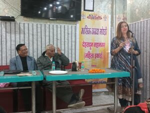 देहरादूनः राष्ट्रीय कवि संगम की महिला इकाई की ओर से शनिवार को विधानसभा रोड स्थित गुफ्तगू बुक एंड काफी बार में आयोजित काव्य गोष्ठी में कवियों ने जहां प्यार-मोहब्बत की रचनाएं सुनाई, वहीं देशभक्ति की रचनाओं से जोश भरा। कवि गोष्ठी की अध्यक्षता संस्था की अध्यक्ष मीरा नवेली ने की, जबकि संचालन धमेन्द्र उनियाल धर्मी ने किया।