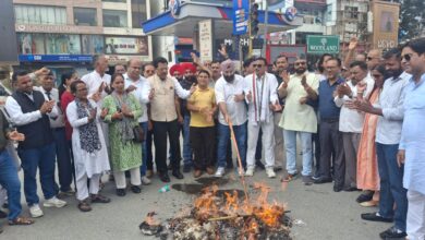 पार्क आवंटन घोटाले के खिलाफ कांग्रेस का प्रदर्शन, फूंका पुतला