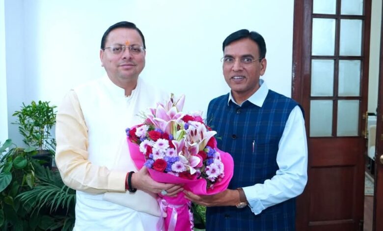 - धामी नई दिल्ली में केंद्रीय युवा कार्यक्रम एवं खेल मंत्री डॉ. मनसुख मांडविया से मिले