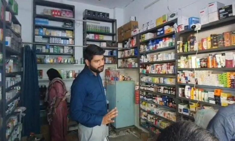 मेडिकल स्टोर्स पर छापे, 12 प्रकार की एलोपैथिक दवाएं जब्त