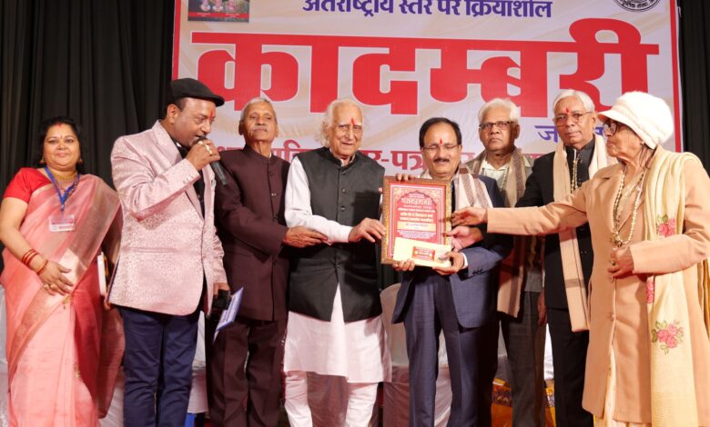 देहरादून/जबलपुर।अंतर्राष्ट्रीय स्तर पर क्रियाशील संस्था ” कादम्बरी” का अखिल भारतीय साहित्यकार पत्रकार सम्मान समारोह शहीद स्मारक प्रेक्षागृह में आयोजित किया गया , जिसमें देश भर के 127 साहित्यकारों और पत्रकारों को कादम्बरी अलंकरण से विभूषित किया गया।समारोह के मुख्य अतिथि अनेक विश्विद्यालयों में कुलपति रह चुके प्रयागराज से डॉ कृष्ण बिहारी पाण्डे और अध्यक्षता आचार्य भगवत दुबे ने की।इस अवसर पर साहित्यिक पत्र “नवोदित प्रवाह,” देहरादून के प्रधान संपादक रजनीश त्रिवेदी आलोक को पत्रकारिता के लिए क्रांतिवीर पं विद्यासागर सम्मान प्रदान किया गया। यह सम्मान वरिष्ठ कवि और संस्था अध्यक्ष आचार्य भगवत दुबे, साहित्यकार डॉ महेश दिवाकर, सजलकार डॉ अनिल गहलोत द्वारा शॉल, माला, प्रतीक चिह्न , सम्मान पत्र और नकद धनराशि प्रदान कर सम्मानित किया गया।