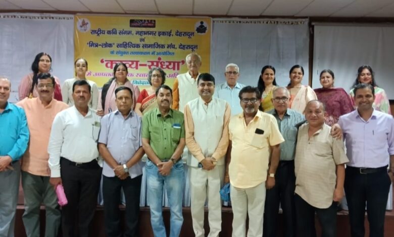 देहरादून: राष्ट्रीय कवि संगम (महिला-पुरुष) महानगर शाखा एवं ‘मित्र-लोक’ साहित्यिक-सामाजिक मंच के संयुक्त तत्वावधान में रविवार को राजपुर रोड स्थित राष्ट्रीय दृष्टि दिव्यांगजन सशक्तिकरण संस्थान (एनआईईपीवीडी) में आयोजित काव्य संध्या में काव्य के विविध रंग बिखरे। इस मौके पर दृष्टि दिव्यांग विद्यार्थियों ने भी अपनी रचनाओं से सभी कवियों का मन मोह लिया। वरिष्ठ कवि पवन शर्मा के शानदार संचालन में शहर के 27 रचनाकारों तथा 10 दृष्टि दिव्यांग बाल रचनाकारों ने काव्य पाठ किया।