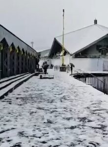 हेमकुंड साहिब में बिछी बर्फ की सफेद चादर